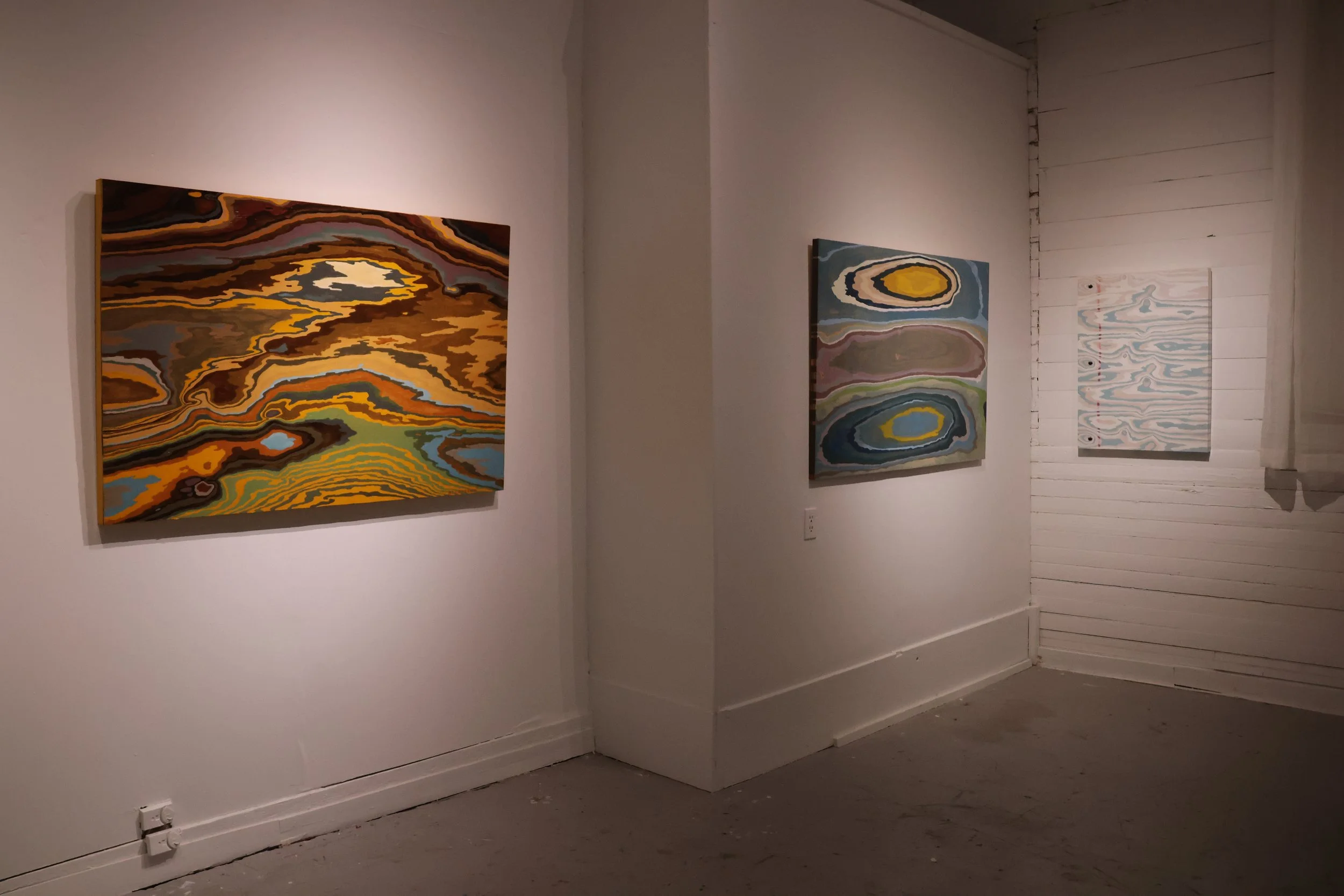 Since this show premiered, Aaron continues to work on wood grain paintings;