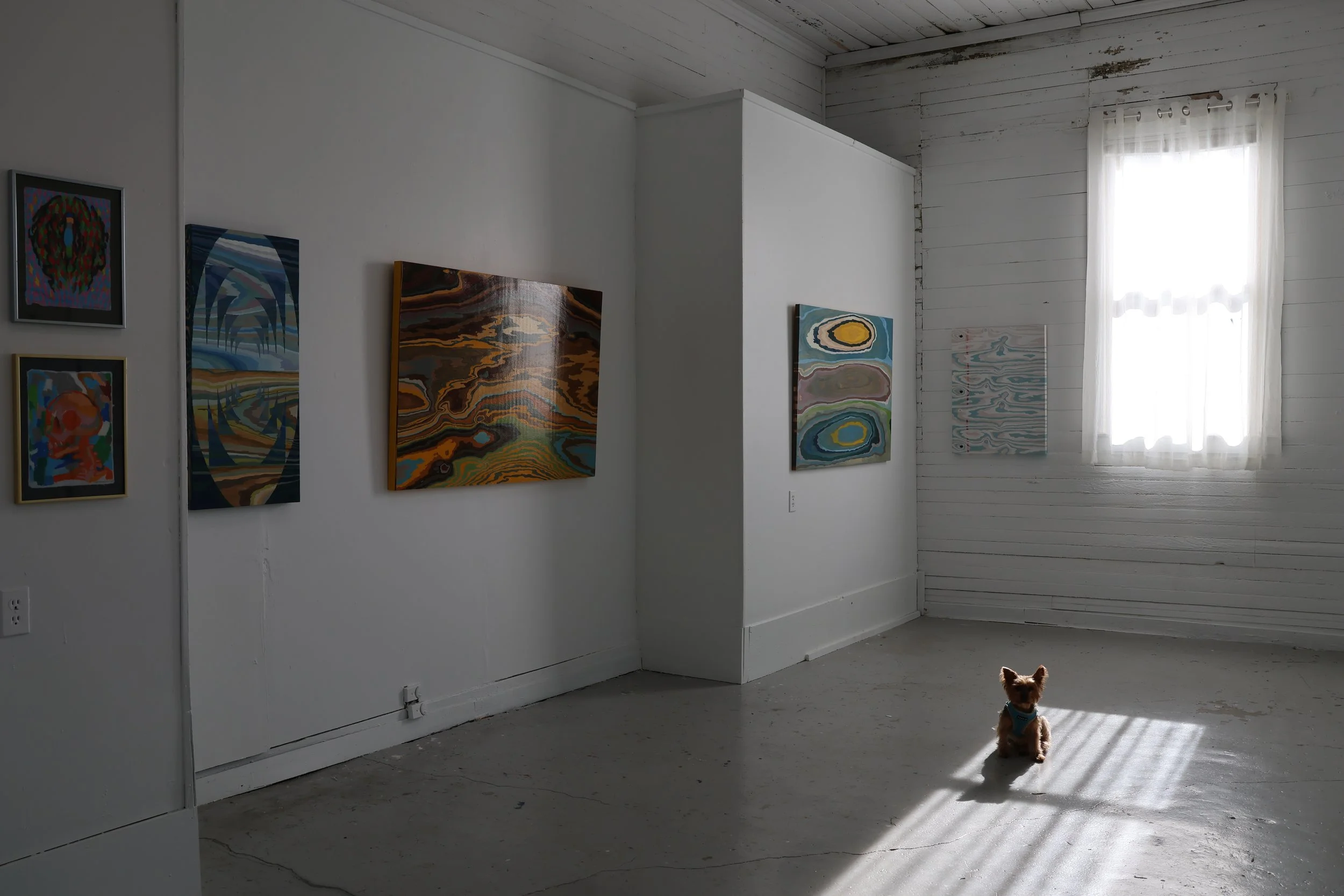 some ground hog days between our meeting and this show, aaron has made breakthroughs in his struggle - opening his first llc as an independent builder, plumber, and handyman, and creating a new body of work for his first solo show for dogwater gallery. what Bill Murray taught us and aaron embodies— is that we should not meet our days with frustration, but gratitude and an eye focused on growth.
